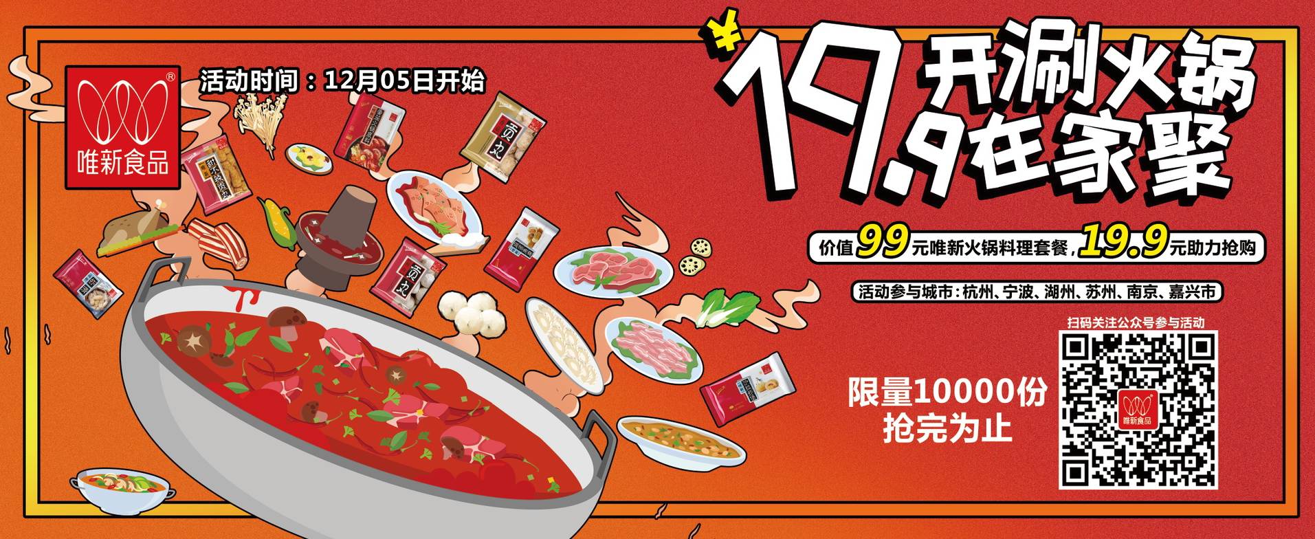 唯新價(jià)值99元火鍋料理套餐, 邀請(qǐng)好友助力搶購, 可低至19.9元購買! 周末...