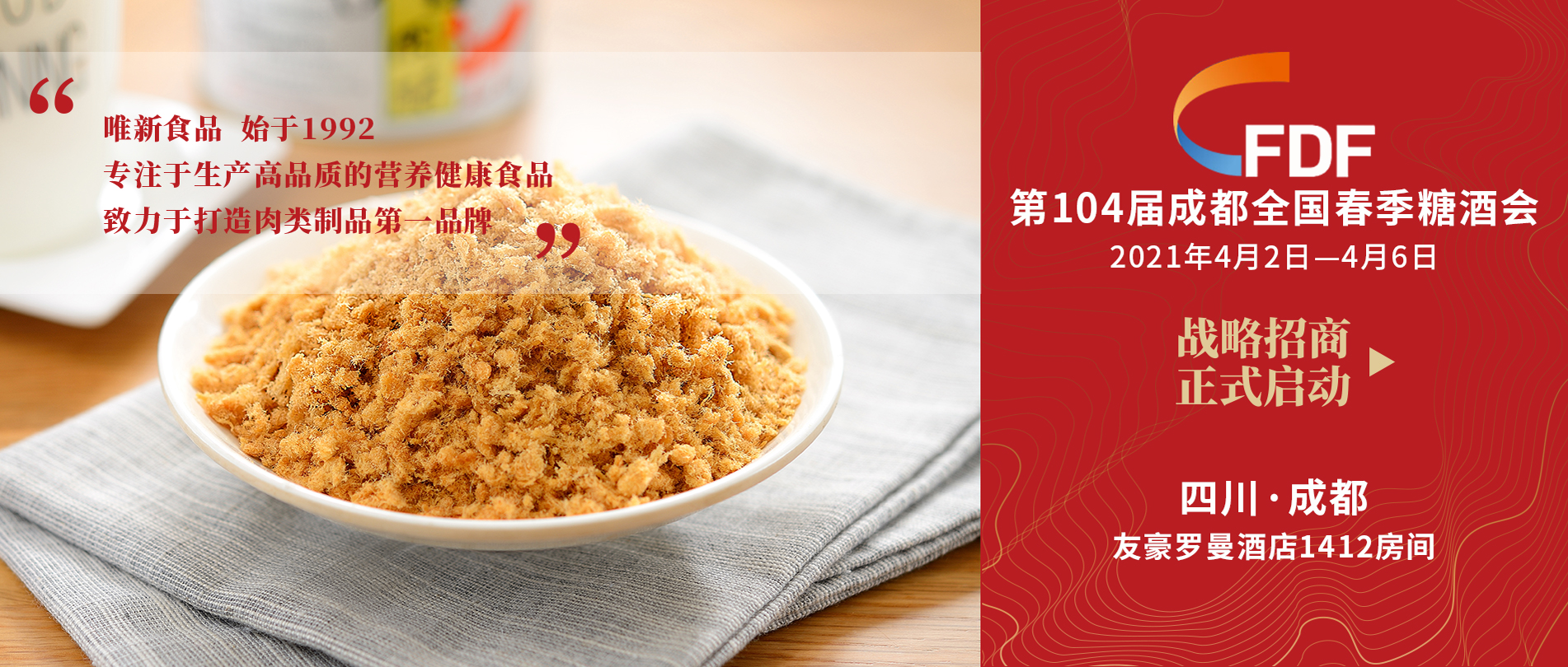 2021年4月2日,唯新食品參展第104屆全國糖酒會(huì)。展會(huì)上,唯新食品攜肉酥、休閑全系列干貨產(chǎn)...